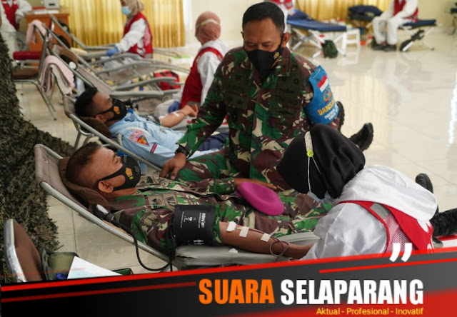 Mataram, Suara Selaparang- Menyambut HUT Kodam IX/Udayana ke-64 tahun 2021 pada 27 Mei mendatang, Korem 162/WB menggandeng PMI Kota Mataram menggelar bakti sosial donor darah di Gedung Soedirman Makorem 162/WB jalan Lingkar Selatan Kota Mataram, Senin (24/5/2021).